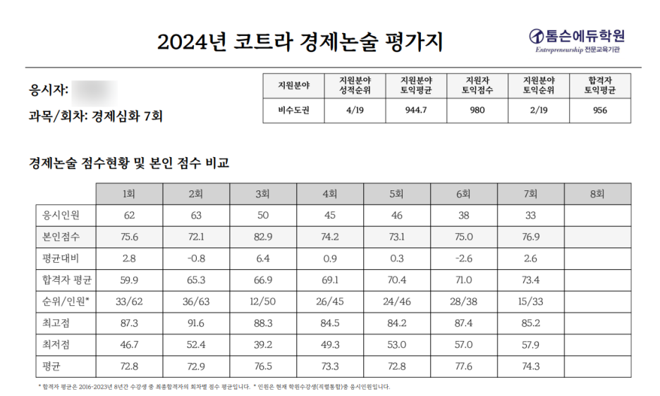 총평하자면, 경제에 대해 기본지식이 1도 없는 사람일수록 톰슨에듀를 수강하는 것을 추천한다. 보통 경제문제집은 객관식위주로 되어있지만, 톰슨선생님강의는 코트라 논술에 포커스가 맞춰진 강의이기 때문에 이 강의를 통해서 논술실력은 물론이고, 경제지식, 직무역량 지식까지 습득할 수 있기 때문이다.