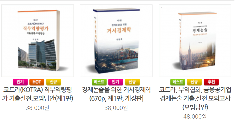 그리고 교재에 대해서 말을 해보자면, 톰슨선생님이 직접 작성한 거시경제학, 경제논술, 직무역량 책 모두 추천한다.
