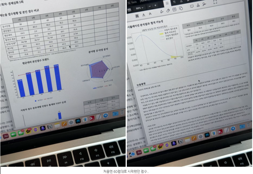 또 직무역량과 같이 수강을 하면 토익점수+경제논술점수+직무역량 점수를 가중치별로 합산해서 합격 가능 점수대도 보여주시기 때문에 동기부여도 제대로 됩니다