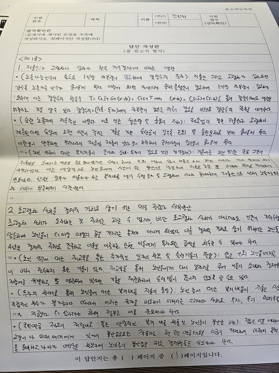 즉 15점짜리 문제는 15줄을 쓰셔야 한다는 것이고, 요약하시거나 그러면 안된다는 것입니다.